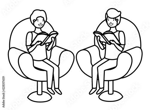 © Grgroup, Obraz premium men sitting in sofa with book avatar character