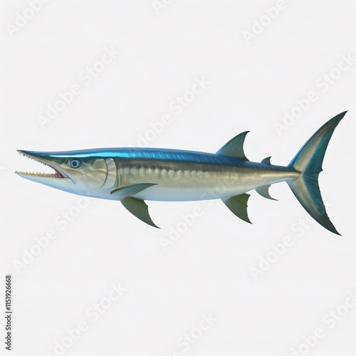 © ArtPixel-Portfolio, Obraz premium Menacing 3D barracuda rendering, sharp teeth exposed, white background isolation