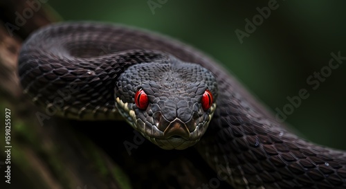 Fototapeta premium Menacing Gaze Captivating Portrait of a Venomous Snake with Striking Red Eyes