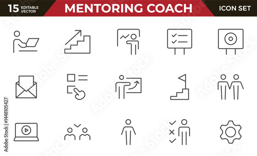 © Iconicly, Naklejka premium Mentoring and Coaching Icon set. Vector-Based Icons for Mentorship, Leadership, Learning, Support, and Growth