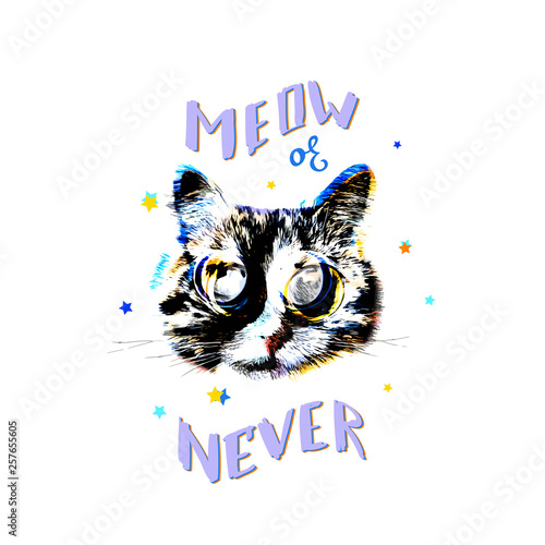 © OlgaLim, Naklejka premium "Meow or Never" Vector poster