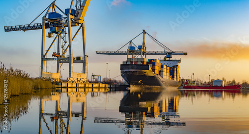 © Mike Mareen, Fototapeta premium merchant ship in the sea port