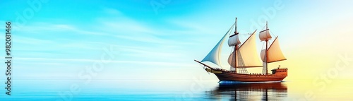 © Naput, Obraz premium Merchant ship sailing on the ocean flat design, side view, adventure theme, 3D render, Split-complementary color scheme