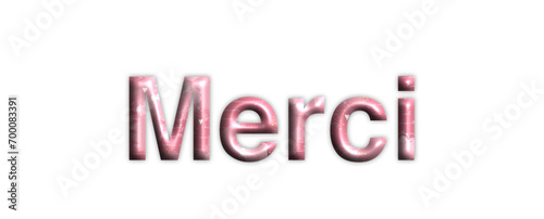 Fototapeta premium Merci - thank you written in French - lettering - pink color, embossed tubular font, transparent backgroun - image, poster, placard, banner, postcard, card.