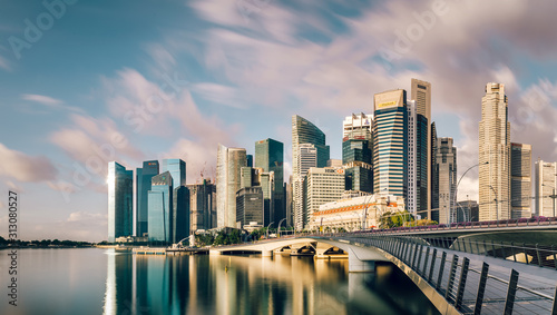 Fototapeta premium Merlion Central Business District, Singapore - Aug 2019 - CBD view Merlion from Marina By sunrise