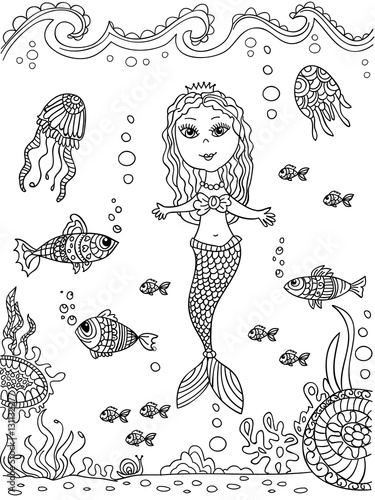 © nataliiamiethe, Obraz premium Mermaid at sea bottom.