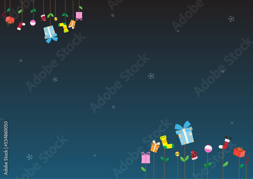 © Muayly_P, Naklejka premium Merry Christmas and Happy New Year background with gift tree and snow fall on sky blue background with empty space for display logo and content, creative design background, vector illustration