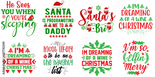 Fototapeta premium Merry Christmas and Happy New Year Phrase Bundle Christmas Vector...
