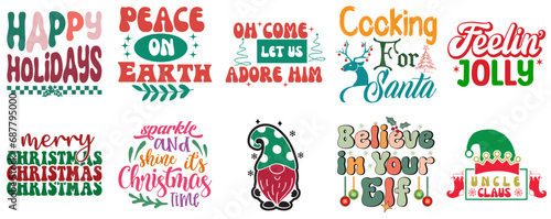 © David, Fototapeta premium Merry Christmas and Holiday Celebration Typography Set Vintage Christmas Vector Illustration for Holiday Cards, Advertising, Brochure