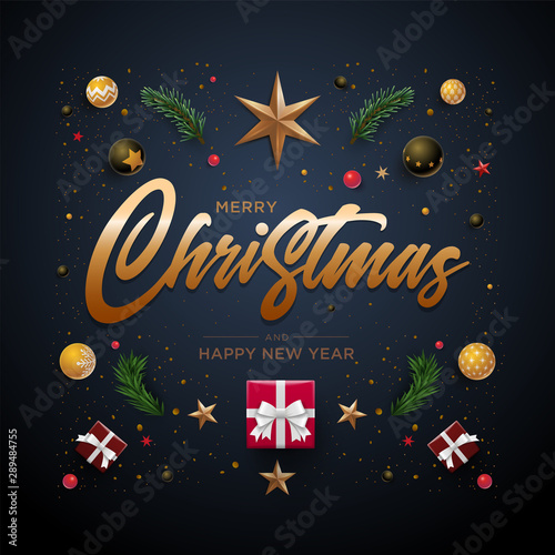 Fototapeta premium Merry Christmas and New Year greeting card design