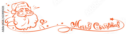 © PETR BABKIN, Naklejka premium Merry Christmas banner with Santa Claus and calligraphy, vector