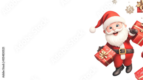 © yendisupiandi, Fototapeta premium Merry Christmas Banner with Santa Holding a Present. png