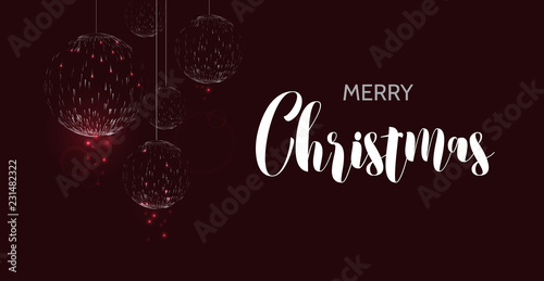 Fototapeta premium Merry christmas black background. Glow Christmas ball design greeting card....
