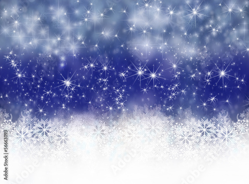 Fototapeta premium Merry Christmas: Blue Background with snowflakes and stars