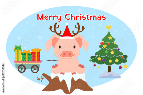 © VectorBoyZ, Fototapeta premium Merry Christmas card with cute pig.