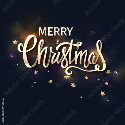 © natashanast, Fototapeta premium Merry Christmas card with lettering. Vector illustration.