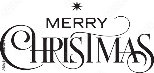 © Masud, Fototapeta premium Merry Christmas elegant calligraphy and Bethlehem star. Holy night vector handwriting concept for xmas greeting card or church service invitation