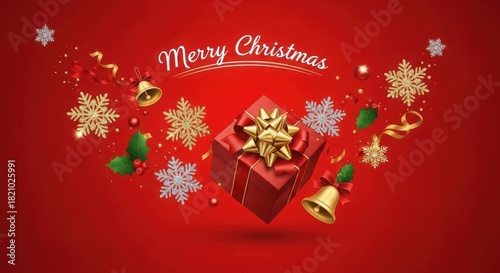 © Ayesha, Fototapeta premium Merry christmas festive background with gift and decorations