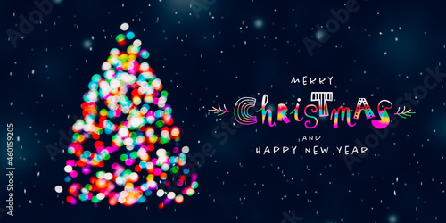 Naklejka premium Merry Christmas greeting with Christmas tree made of colorful blurred lights