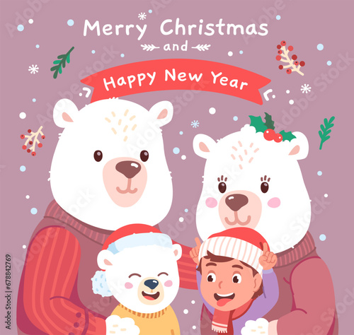 © iconicbestiary, Fototapeta premium Merry Christmas, Happy New Year greeting card
