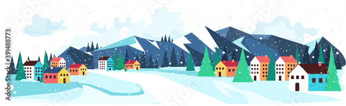 © mast3r, Naklejka premium merry christmas happy new year winter holidays celebration concept greeting card landscape background horizontal vector illustration