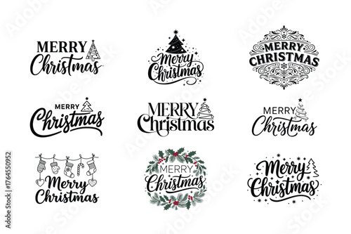 Fototapeta premium Merry Christmas Lettering Design Set