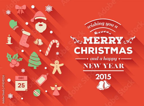 © vectorfusionart, Fototapeta premium Merry christmas message vector with cute illustrations
