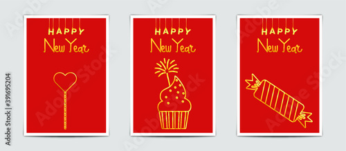 © Bhautik, Fototapeta premium Merry Christmas modern card set elements greeting text lettering red background.