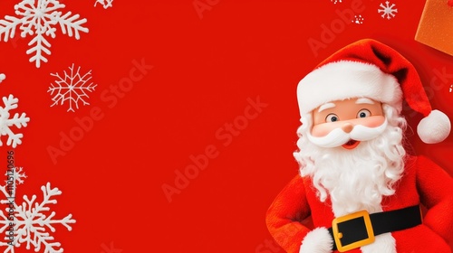 Fototapeta premium Merry Christmas santa claus looking at camera and smilling, copy space on the...