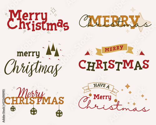 Fototapeta premium Merry Christmas. Vector logo, emblems, text design and Merry Christmas typography set.