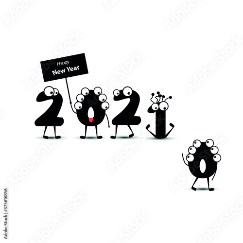 Obraz premium Merry new year 2021 card isolated on white background. Cartoon style. 2020 is...