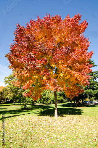 Naklejka premium Mersmerising beauty of trees with green, red, orange and gold colors of...