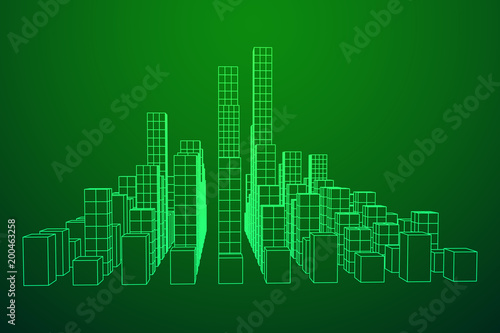 Obraz premium Mesh low poly wireframe cubes array like skyscraper city. Connected lines...