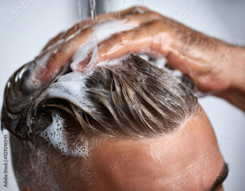 © Monika Janiak-Klicha, Naklejka premium Męski szampon do włosów mycie