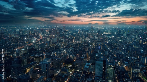 Fototapeta premium mesmerizing aerial panorama of a sprawling cityscape at night, with twinkling...