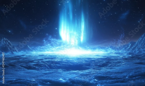 Fototapeta premium Mesmerizing aurora glowing above an icy landscape, representing natural...