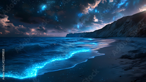 © Thiago, Fototapeta premium mesmerizing bioluminescent beach