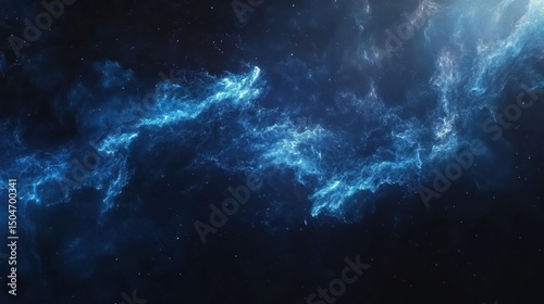 Fototapeta premium Mesmerizing blue-tinged vapor elegantly swirling against a deep dark background creates a captivating atmosphere of tranquility and mystery in an expansive space