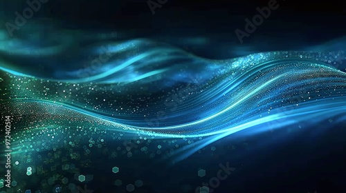 Fototapeta premium Mesmerizing blue waves with sparkling particles, ideal for backgrounds or...