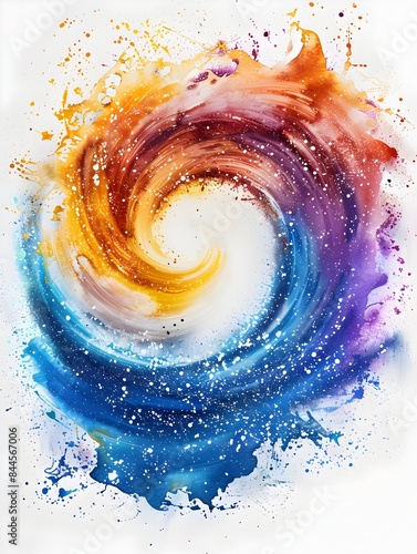 Fototapeta premium Mesmerizing Cosmic Spiral:Vibrant Watercolor Splash Forming a Galactic Masterpiece