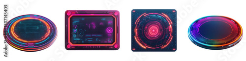 © R Studio, Obraz premium Mesmerizing Futuristic Abstract Digital Art with Prismatic Neon Lights and Geometric Patterns Vibrant and dynamic composition with overlapping circles shapes