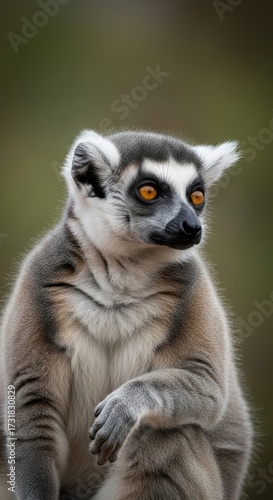 © pulpen, Obraz premium Mesmerizing gaze: portrait of a captivating ring-tailed lemur in natural habitat