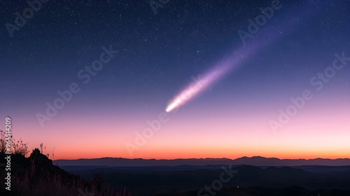 Fototapeta premium Mesmerizing Glowing Comet Trails Streaking Across Twilight Celestial Sky