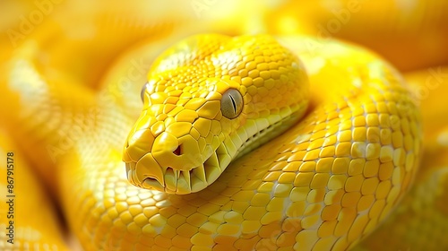 Fototapeta premium Mesmerizing golden python coiled and ready to strike its vibrant scales...
