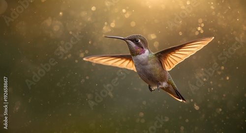 Fototapeta premium Mesmerizing Hummingbird Hovering with Glittering Glow