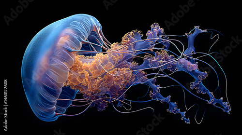 Naklejka premium Mesmerizing Jellyfish A Stunning Underwater Portrait