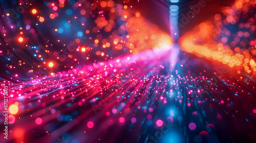 Fototapeta premium Mesmerizing neon like fiber optic rays slicing through the darkness creating...