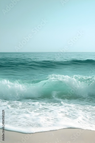 Fototapeta premium Mesmerizing Ocean Waves Cascading Onto a Pristine Beach with a Serene Seafoam Green and White Color