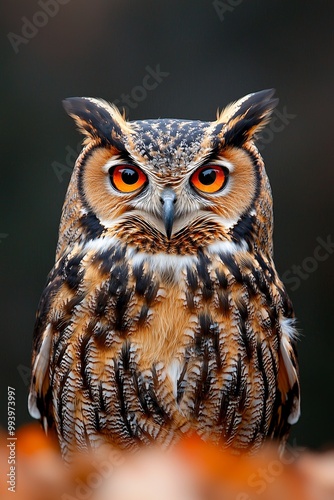© Amara, Fototapeta premium Mesmerizing Owl Closeup Intense Gaze of Majestic Feathered Hunter in Soft Light, Wildlife Portrait