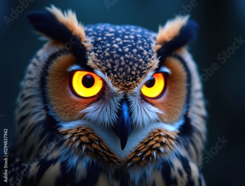 Fototapeta premium Mesmerizing owl staring with glowing golden eyes